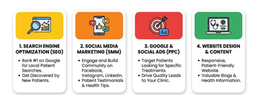 Digital marketing helps doctors and clinics attract more patients, build trust, and grow their practice online. Today, most patients search on Google before visiting a clinic. That’s why having a strong online presence is very important.