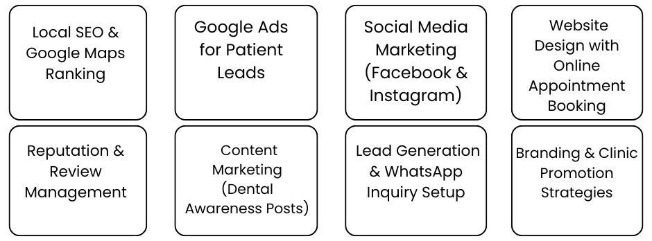 Dentist Marketing Services in Burari, Delhi, help dental clinics attract more local patients and build a strong online reputation. These services include local SEO to rank higher in Google and Maps search results, social media marketing to showcase treatments and patient testimonials, Google Ads to drive instant appointment leads, professional website development with online booking features, and reputation management to improve ratings and reviews.